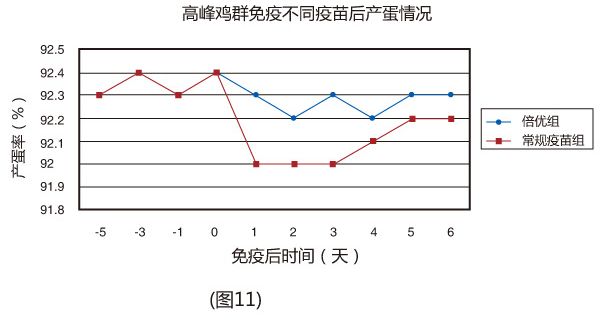 產蛋雞產蛋高峰時免疫倍優(yōu)?系列產品,產蛋率基本無影響(圖11)。