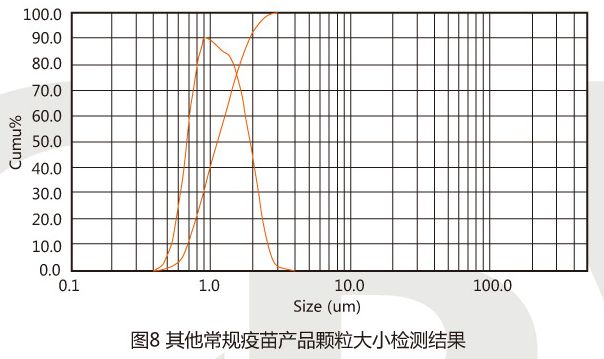倍優(yōu)?系列產品由于免疫劑顯低,疫苗顆粒大小適中、均勻,使 得疫苗具有良好的吸收性(圖9 )。
