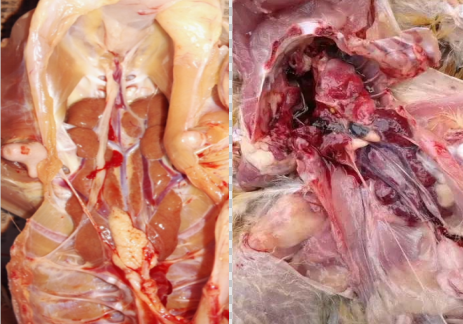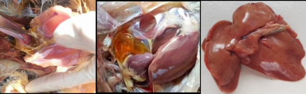 觀察雞群狀況,根據(jù)發(fā)病日齡、臨床癥狀、流行病學和死亡規(guī)律;解剖察看病理變化,若有上述特征性病變則可初步診斷;進一步診斷還需要采集病料(主要肝、腎、肺臟等病變組織),實驗室做核酸檢測。