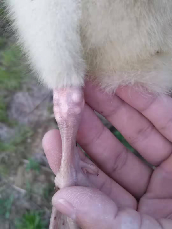 3、發病后期:表現站立不穩,喜臥,受驚嚇時也不能行走,雙側附關節明顯紅腫,喙發紅,體溫升高,脫水。附關節手感發燙,觸碰時雛鵝有疼痛感。大群拉水樣稀便。